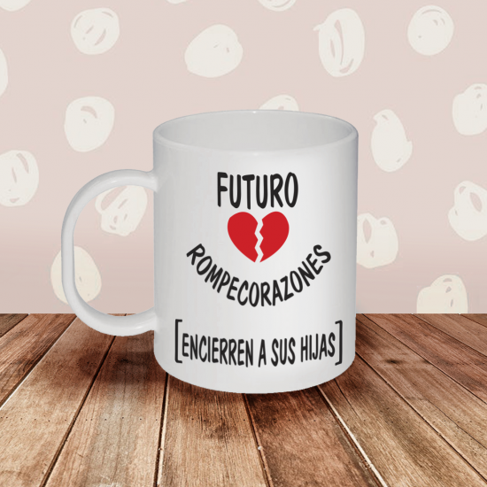 Tazas blancas clásicas bonitas y divertidas en dos materiales: plástico y cerámica.